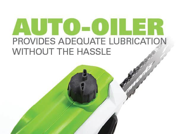 - Автоматическая масленка наносит масло на шину и цепь, чтобы обеспечить долговечность и продлить срок службы цепи.