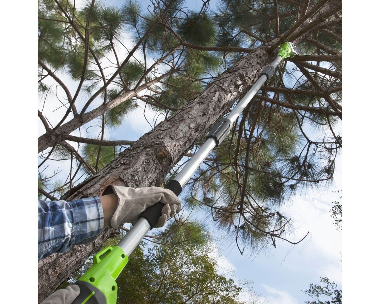 Электрический высоторез Greenworks PSA801 - это специальное приспособление, которое позволяет легко и удобно подрезать ветви и сучья деревьев на высоте до 4 метров без использования лестниц и стремянок.