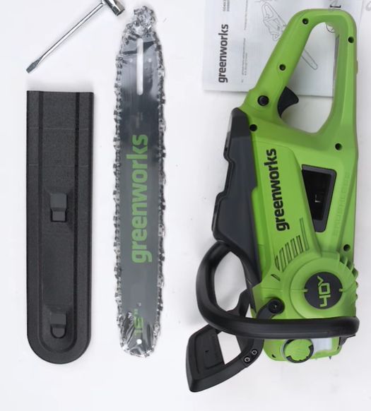 Электродвигатель пилы Greenworks абсолютно экологичен, имеет высокий крутящий момент, отличается низким уровнем шума и вибраций. Двигатель прост в эксплуатации, не требует подготовки масло-бензиновой смеси и не нуждается в обслуживании. Включение пилы производится нажатием курка. Защита от перегрузки повышает надежность инструмента. Для безопасной работы предусмотрены предохранитель и тормоз цепи. Работа от Li-ion аккумулятора 40V совместимого с 50+ моделями инновационного садового инструмента из линейки Greenworks 40V. На инструмент предоставляется расширенная гарантия 3 года. Спецификация: